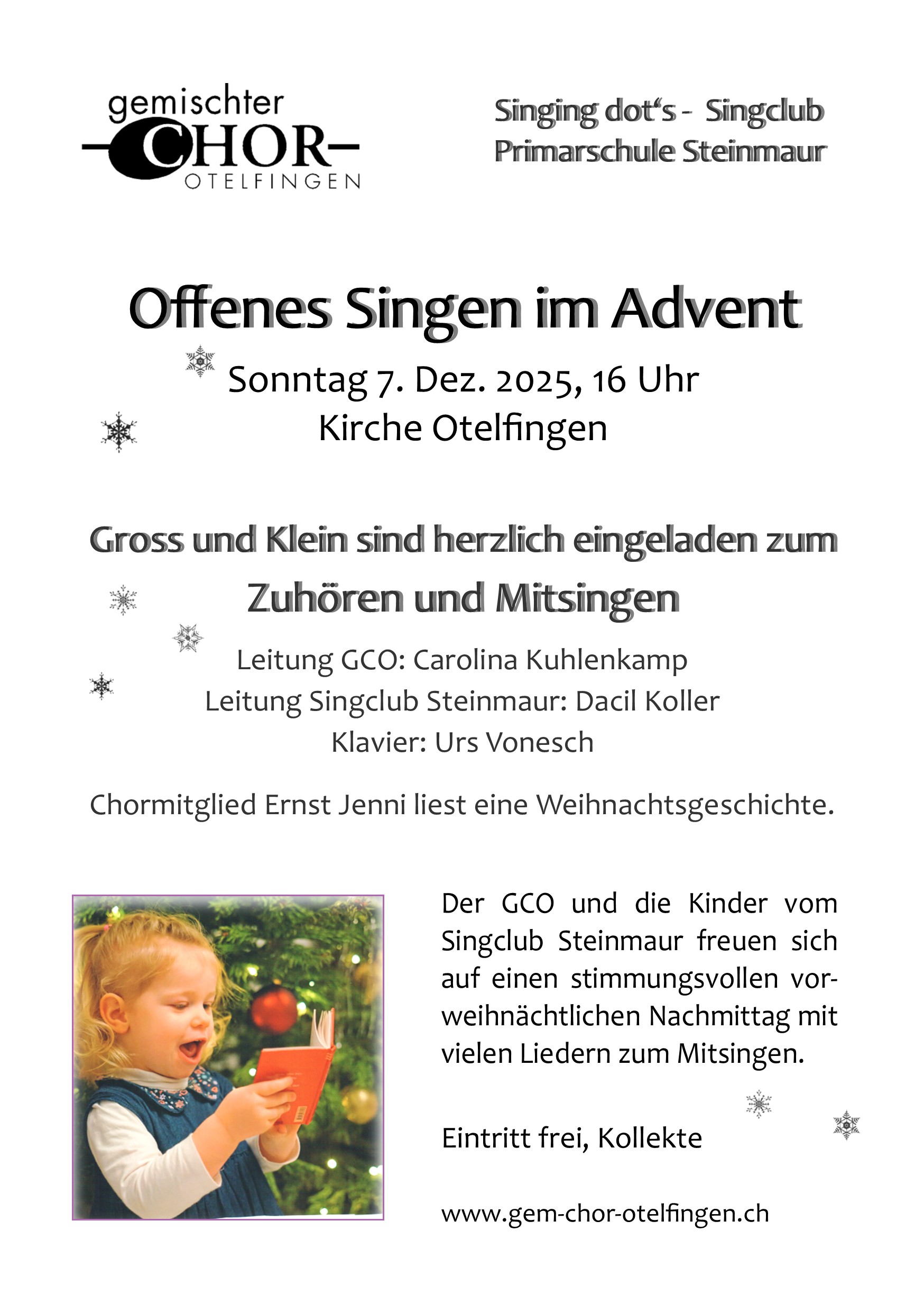 Sonntag, 07. Dezember, Konzert 16 Uhr, Kirche Otelfingen